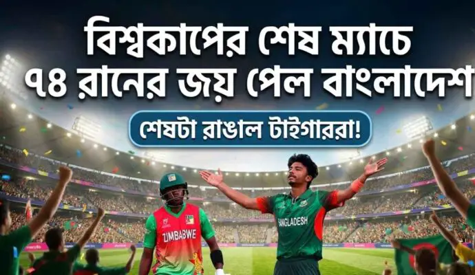 বিশ্বকাপের শেষ ম্যাচে ৭৪ রানের জয় পেল বাংলাদেশ